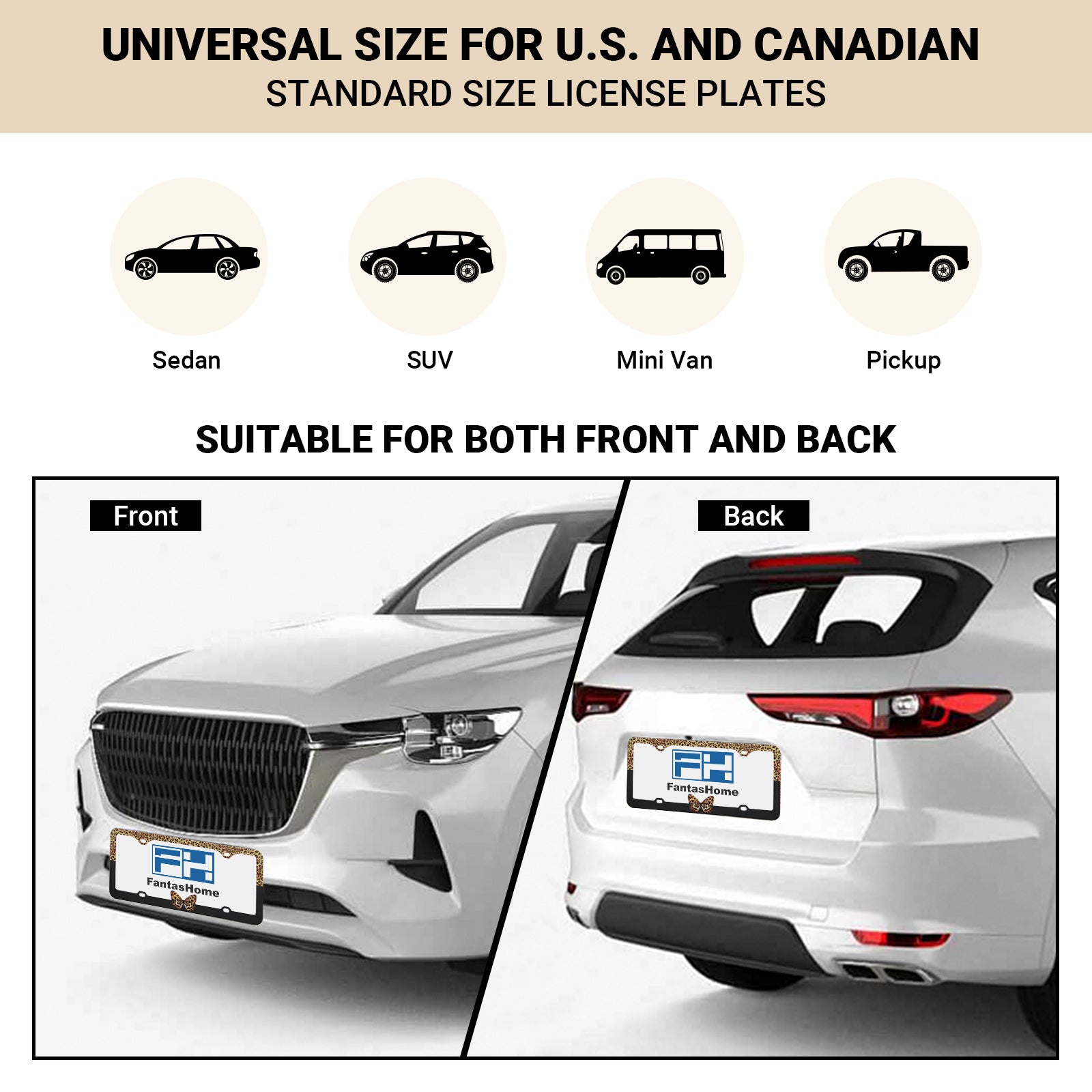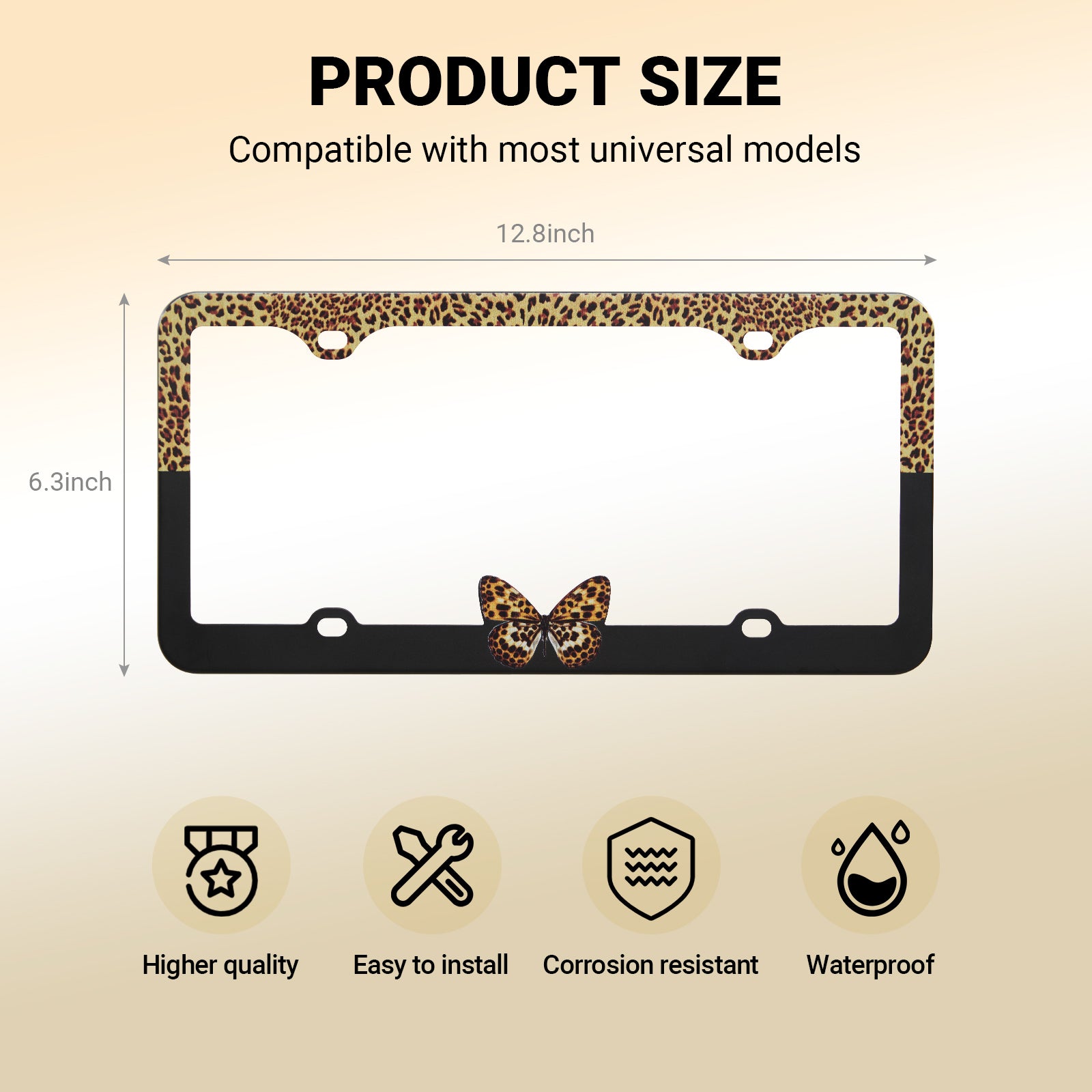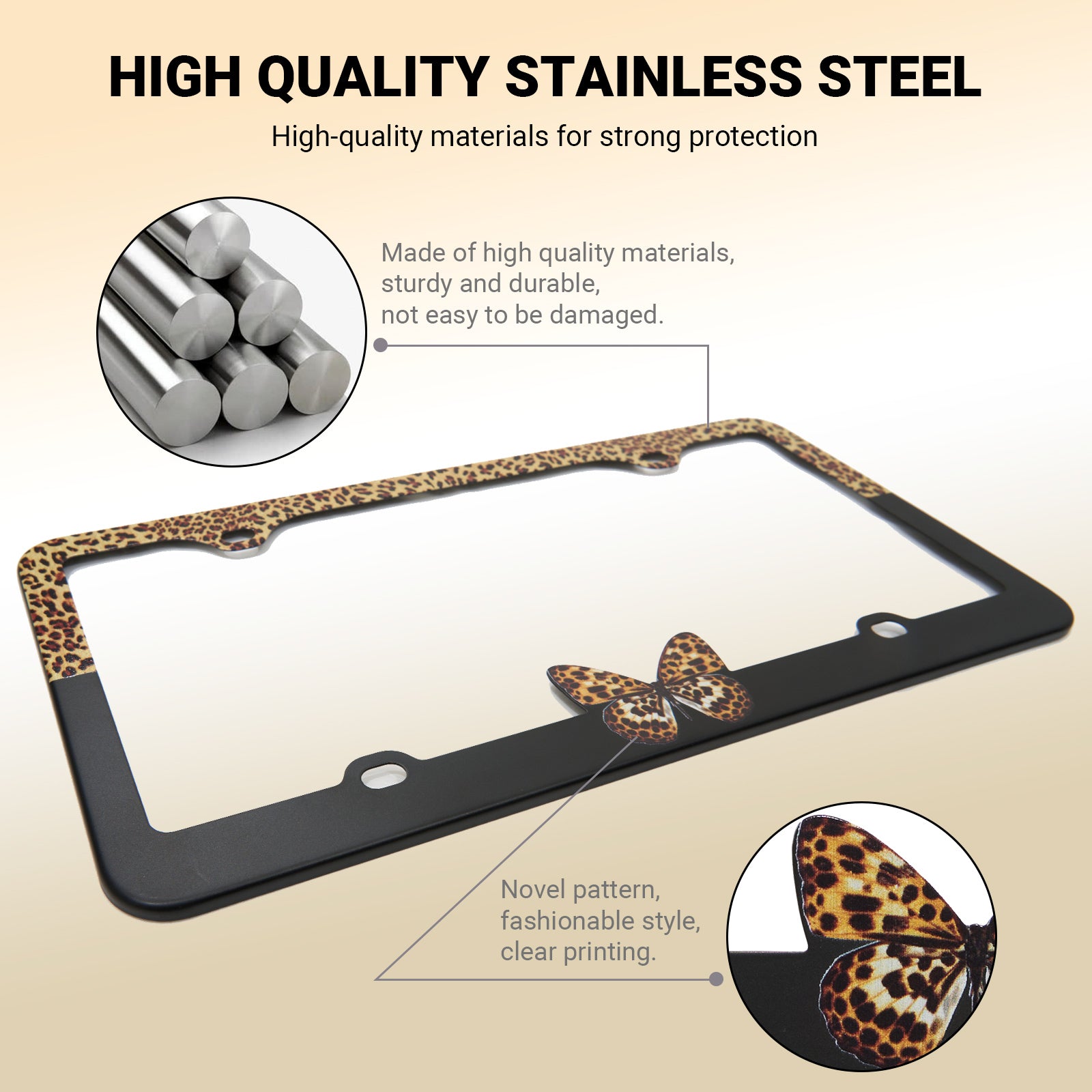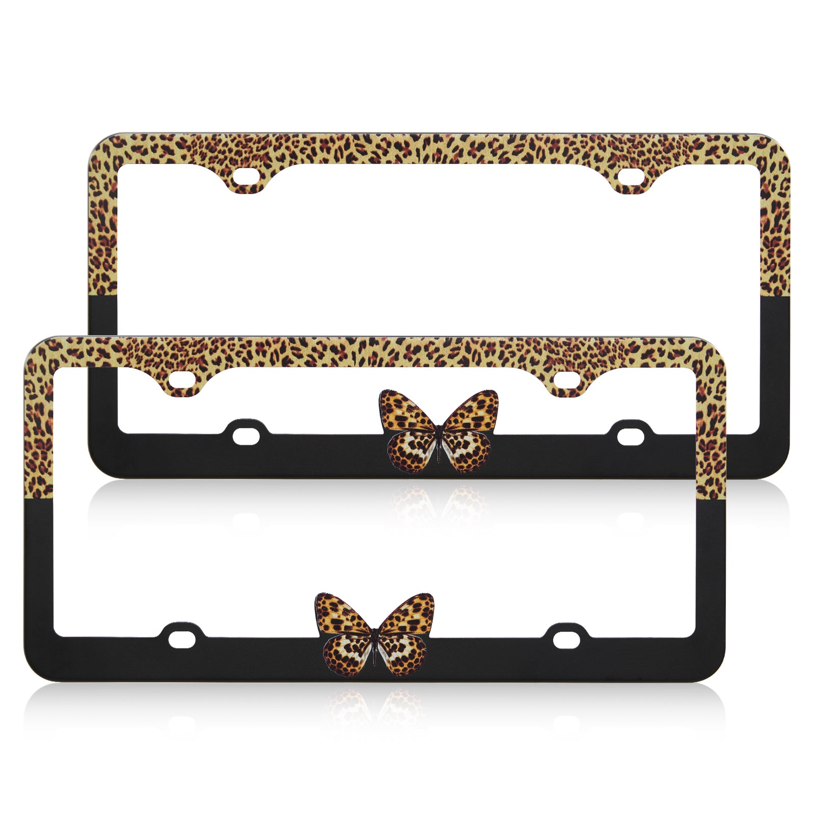 Stainless Metal Car License Plate Frame Cover - Butterfly & Leopard (2 PCS)