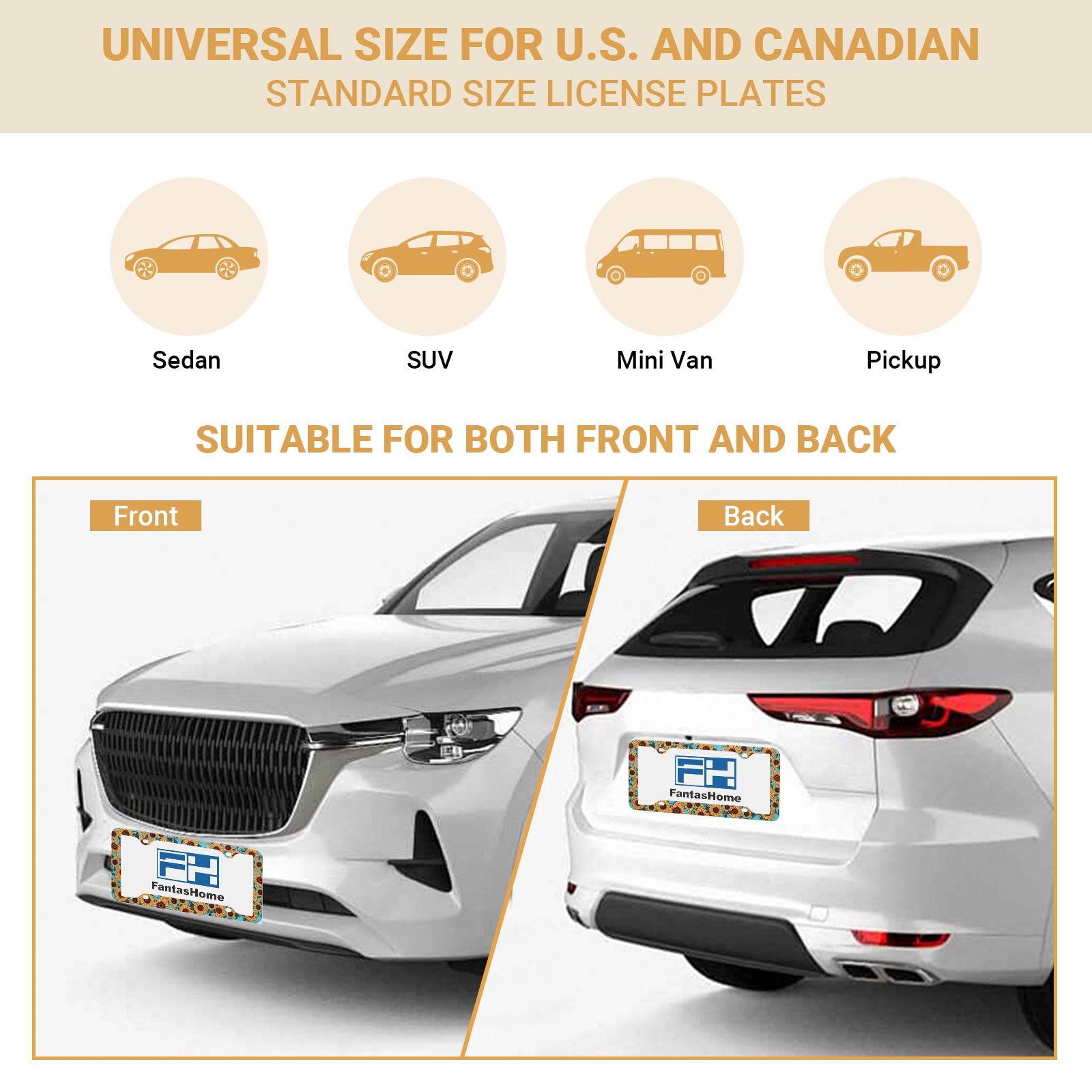Stainless Metal Car License Plate Frame Cover - Sunflower (2 PCS)